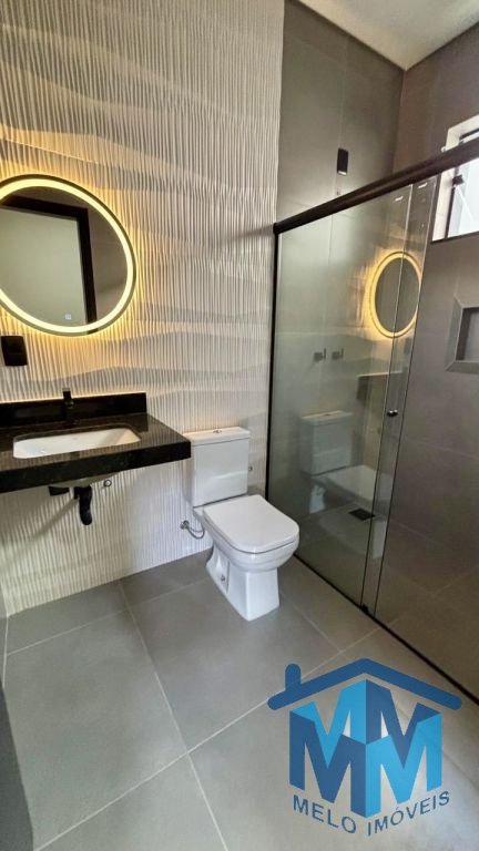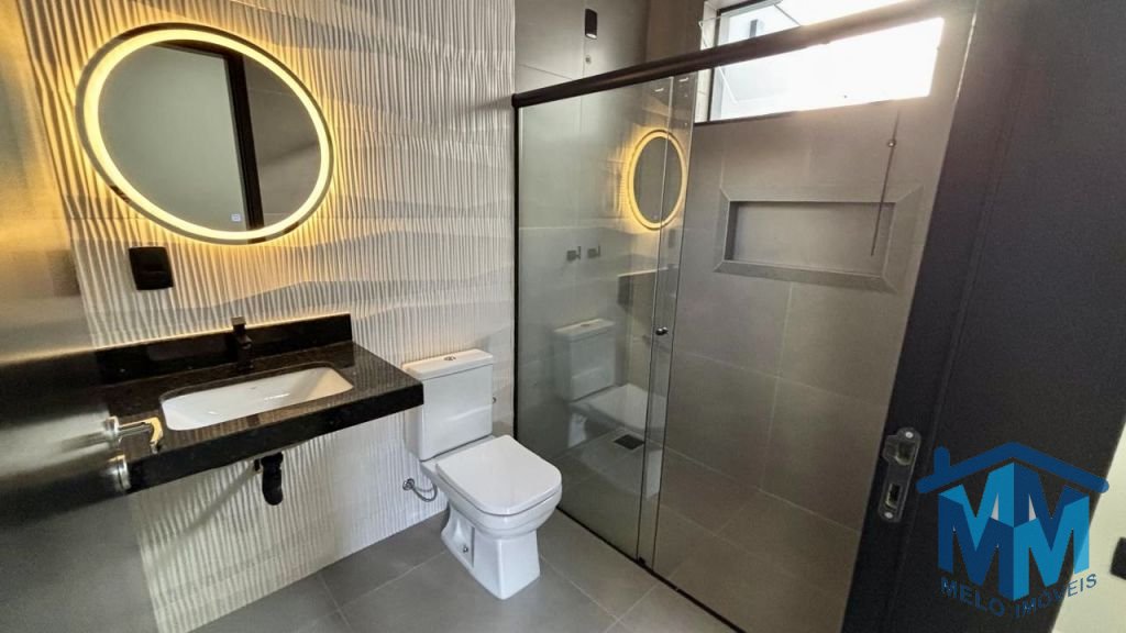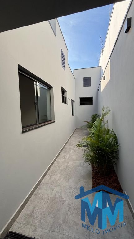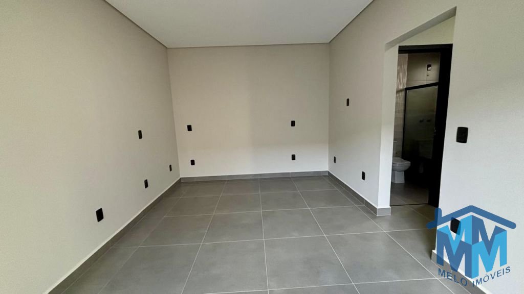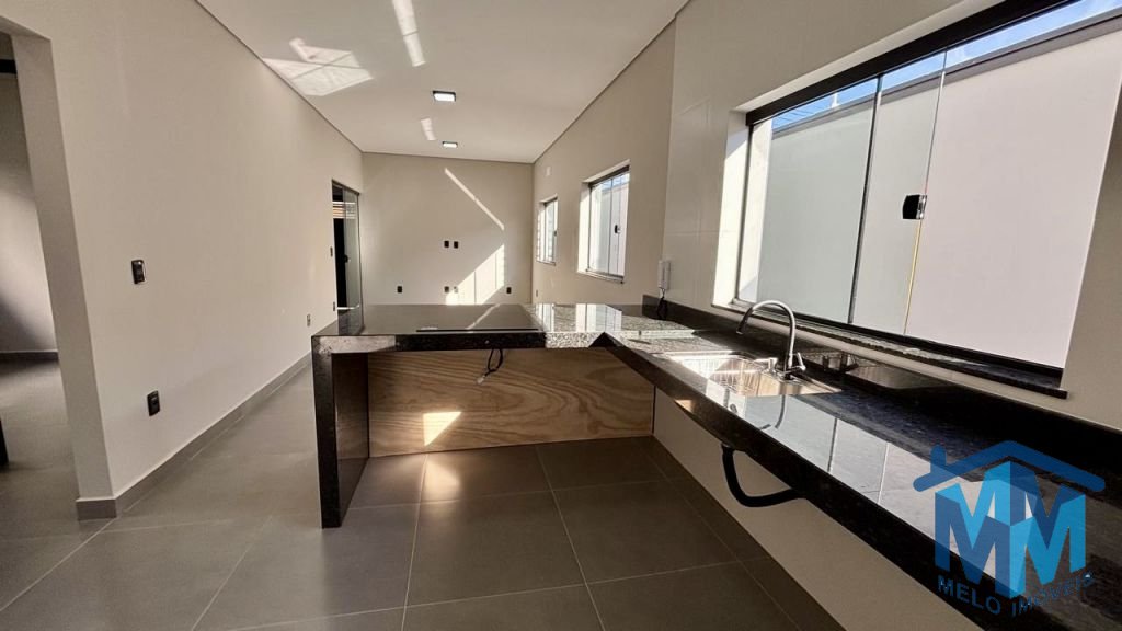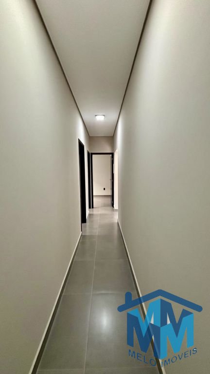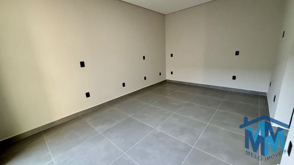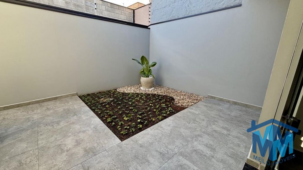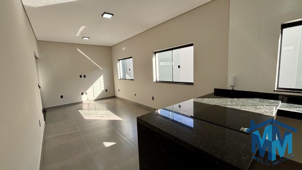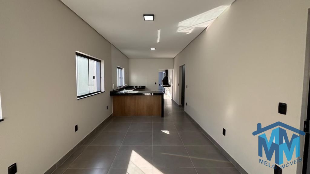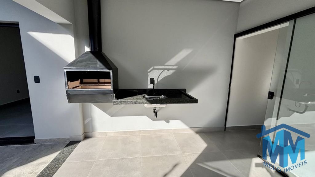 03 dormitórios, sendo 01 suíte com closet, sala integrada à cozinha, banheiro social, lavabo e área gourmet com churrasqueira. Conta com duas vagas de garagem cobertas, portão eletrônico, interfone, porcelanato em toda a área interna e externa, iluminação em LED, forro em gesso, telhado embutido e infraestrutura para ar-condicionado.